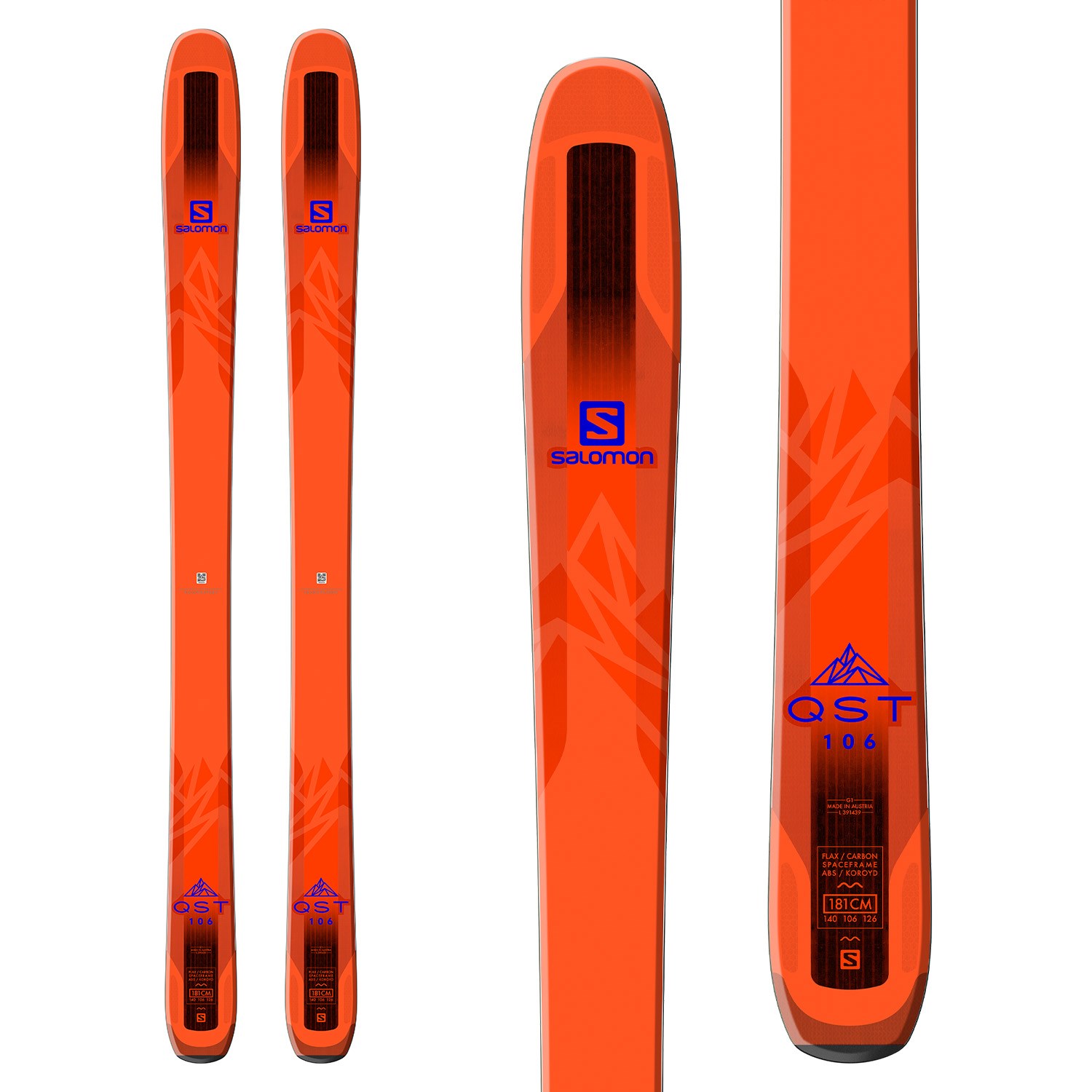 Salomon QST 106TIP WIDTH: 135.5 - 142mm WAIST WIDTH: 106mm TAIL WIDTH: 123.5 - 127mm TURNING RADIUS: 20m |